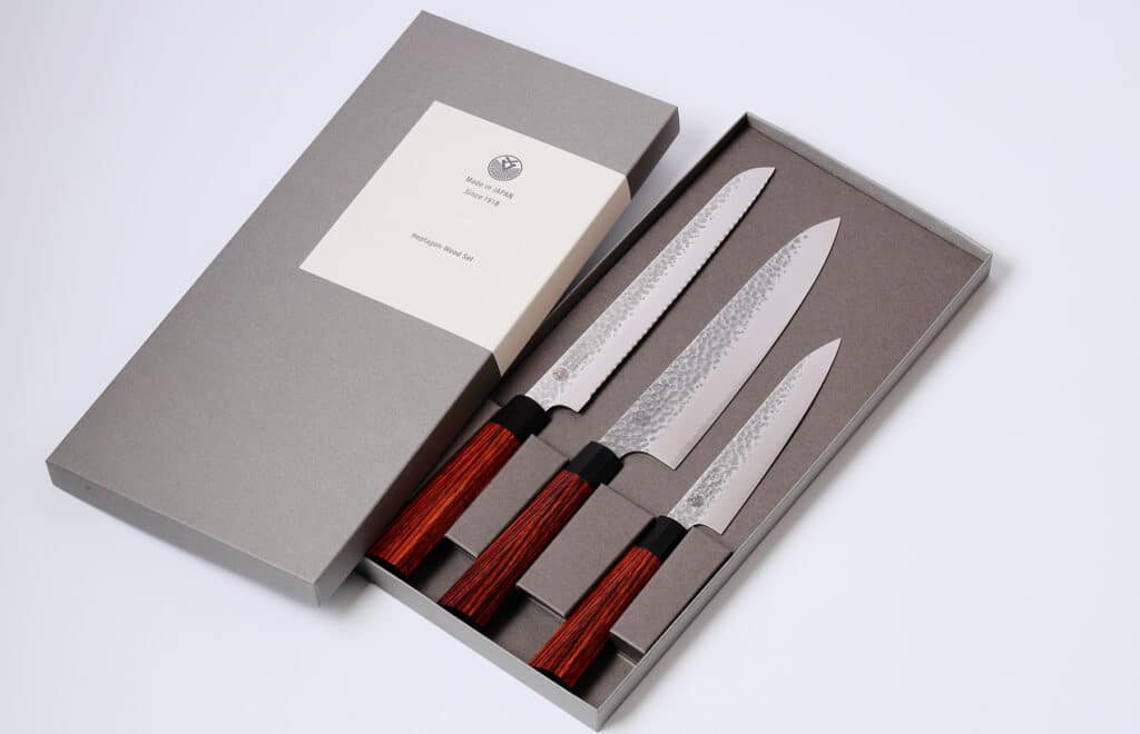 Seki Kanetsugu Gaveæske med 3 styks knive Gyuto, Petty og Brødkniv.