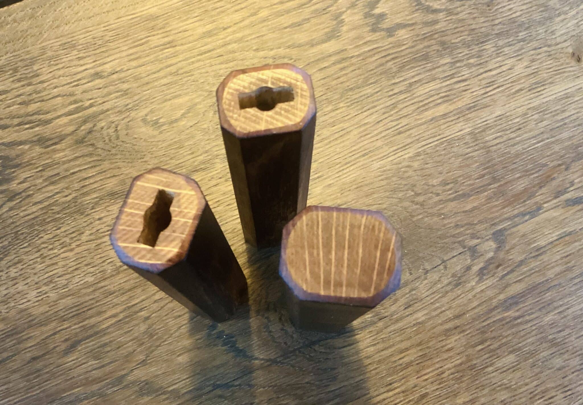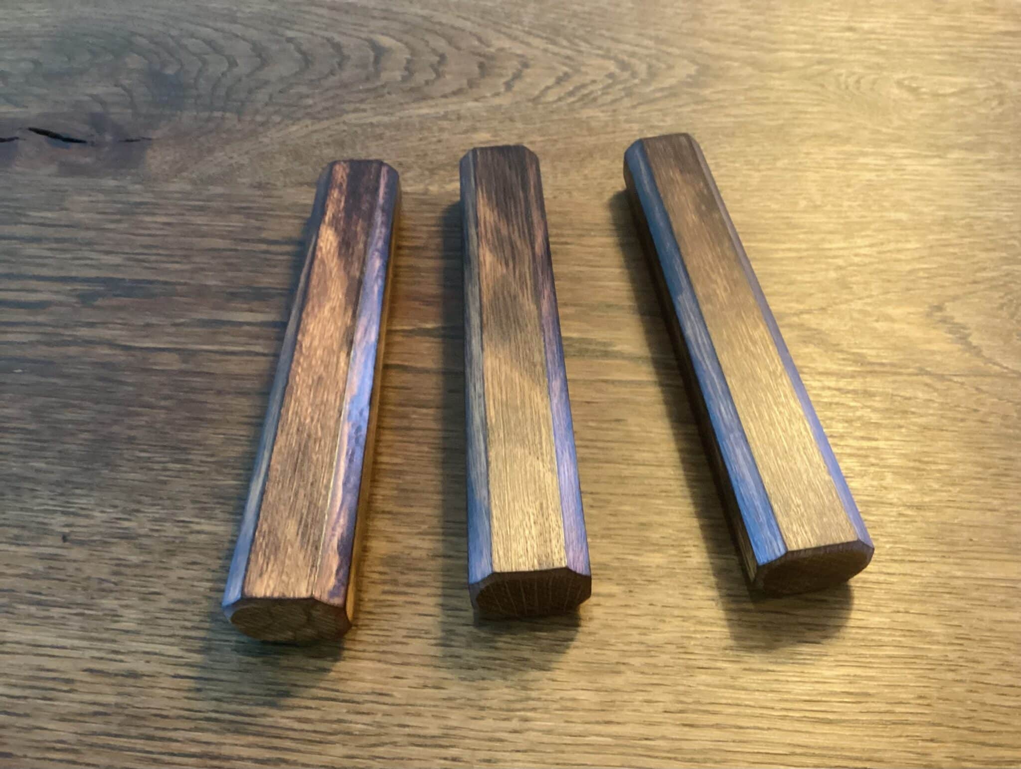 Egetræhåndtag lyst og mørkt ottekantede til mindre knive som Petty.