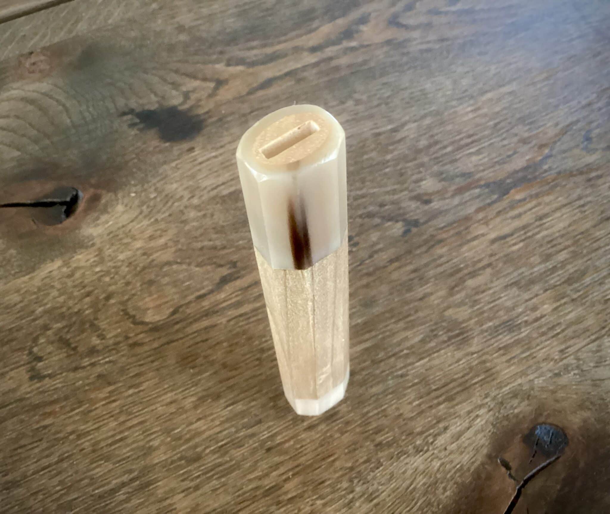 Knivhåndtag af Magnolietræ og lyst bøffel horn. ottekantede til små knive som Petty