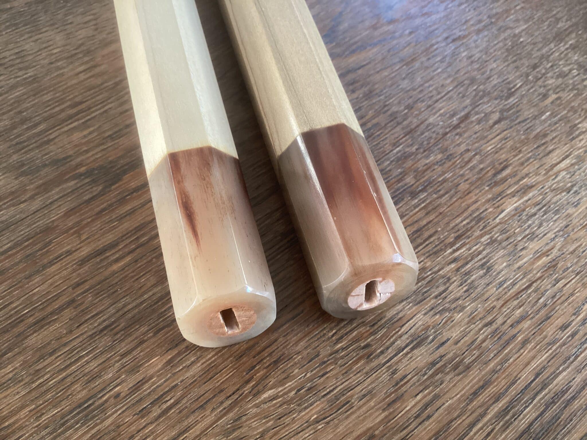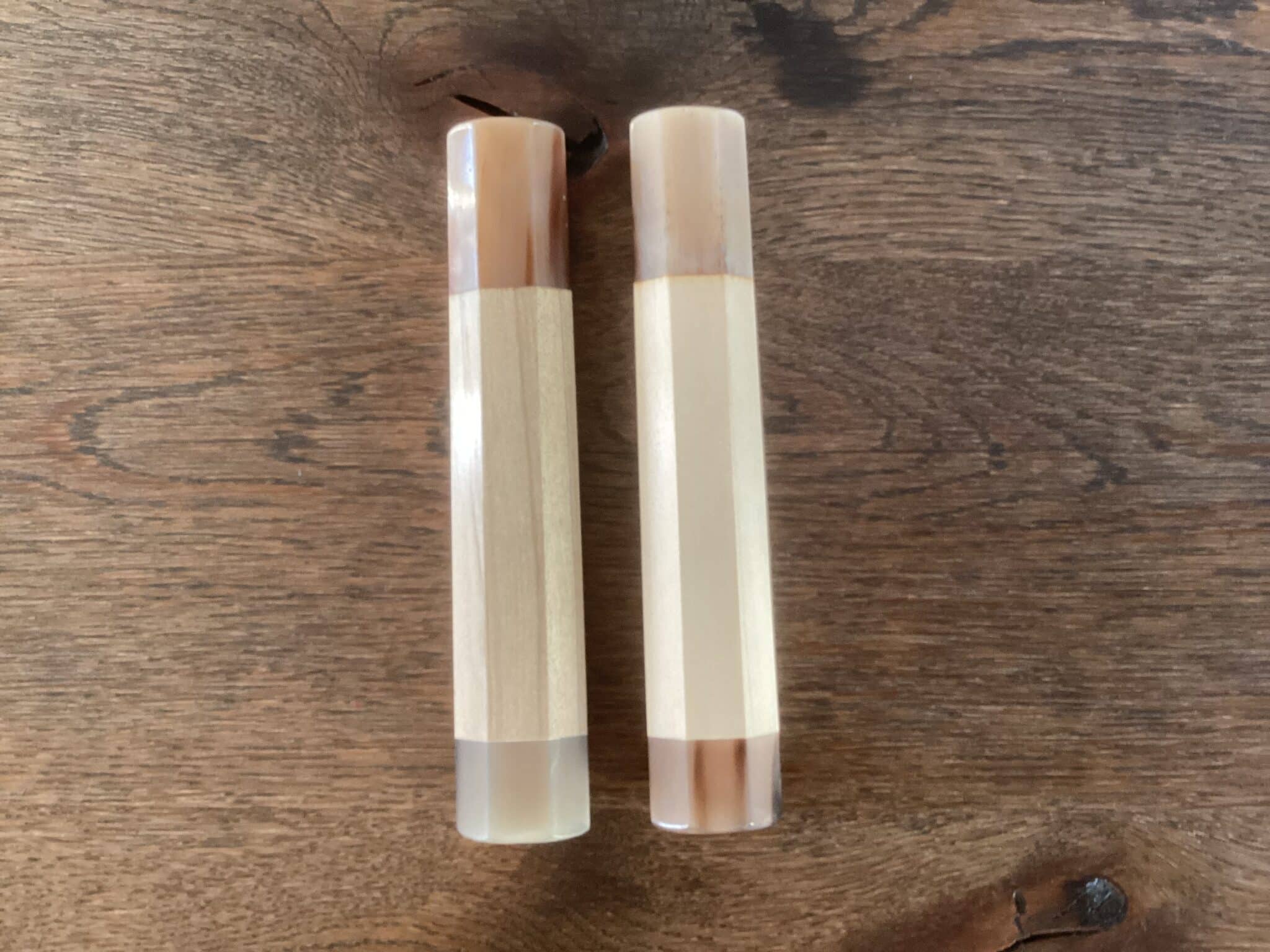 Håndtaget er udført i en elegant kombination af lyst Magnolietræ og naturligt bøffelhorn, der tilsammen giver et tidløst og luksuriøst udtryk.