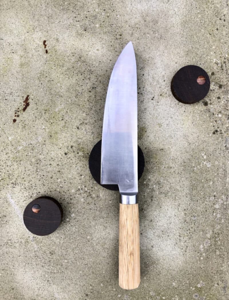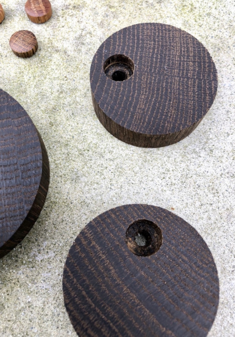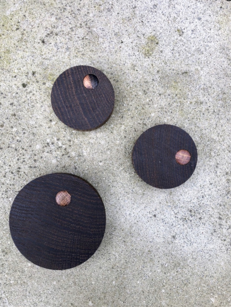 Knivmagnet til væg i røget eg 1 stk. Ø5 cm.