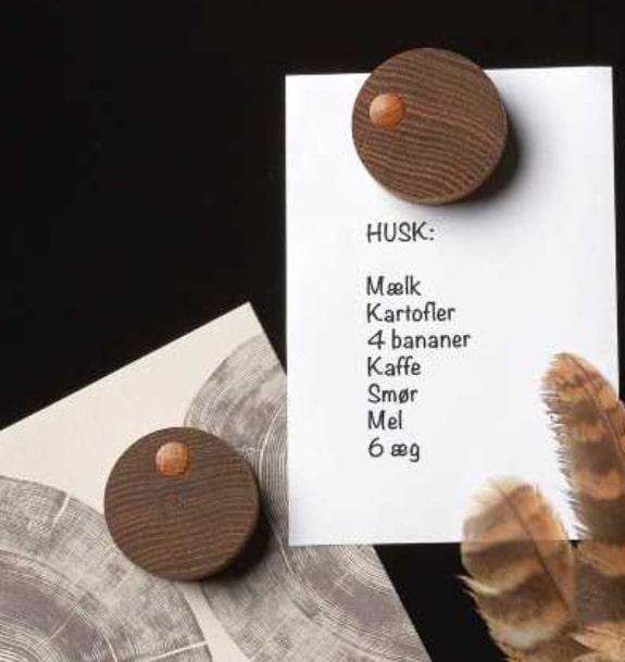 1 stk. Runde magneter i røget eg med ekstra stærke magneter Mål: Ø 5 cm Materiale: Røget eg & Magneter Antal: 1 stk. Dekorative runde træskiver i røget eg med ekstra stærke magneter på bagsiden. Hæng disse flotte egetræsskiver på væggen og påsæt dernæst dine yndlingsknive eller dine nøgler på ydersiden af cirklen. Hver magnet har en ekstra stærk magnet på bagsiden, som sikrer, at selv tunge knive bliver hængende. Skruehul er skjult bag dækprop i kontrastfarvet olieret egetræ. Vægmagneterne kan også bruges i entréen til nøgler og nøglebundter. Magneterne er lavet af overskudstræ fra vores øvrige produktion af skærebræt i eg og er dermed en del af vores miljøvenlige og bæredygtige ideologi, som kendetegner by Brorsons grønne virksomhed.