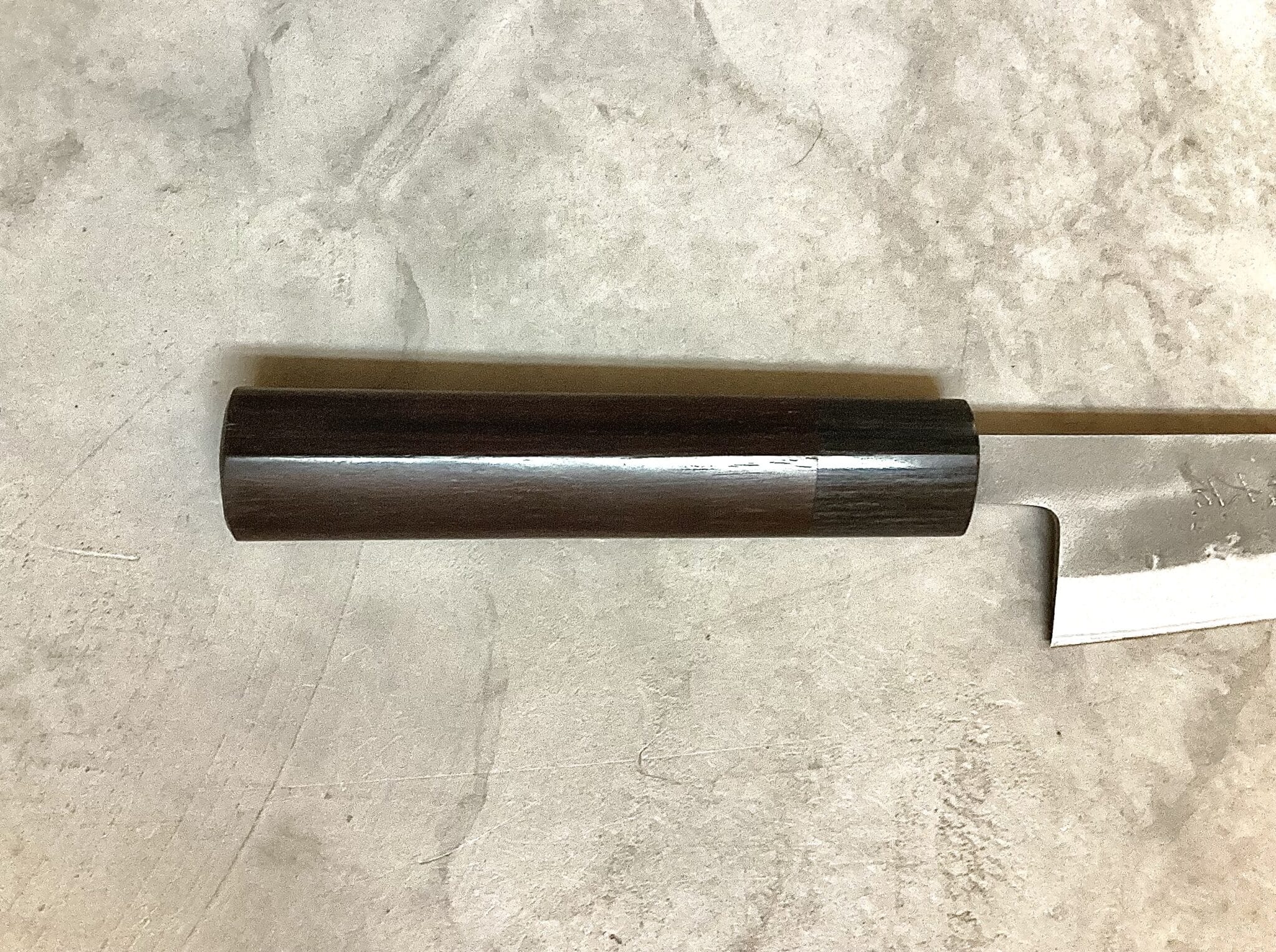 • Håndtag: Rosentræ i Shinogi-form med bolster i pakkatræ. Modstandsdygtigt over for snavs og designet til mange års brug.