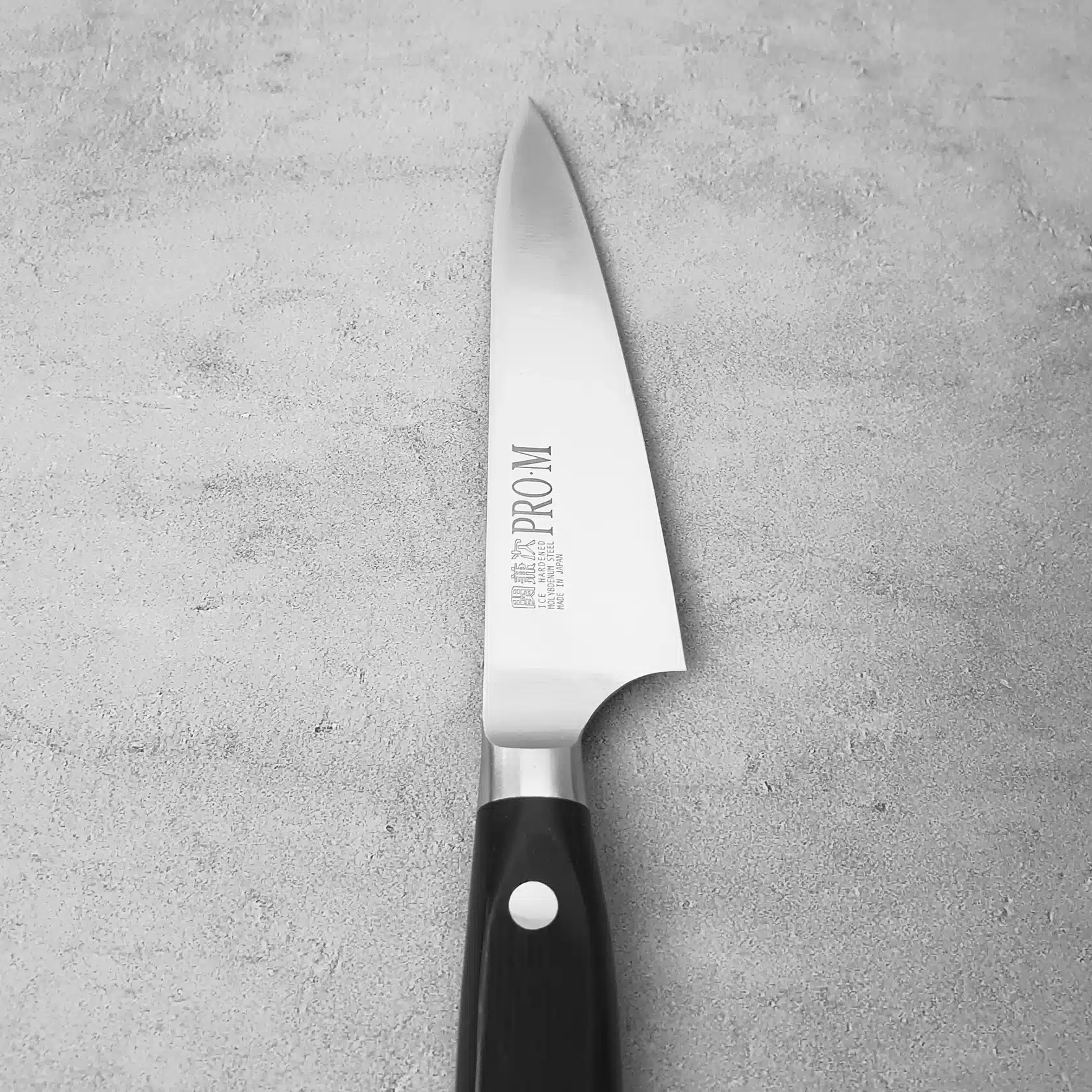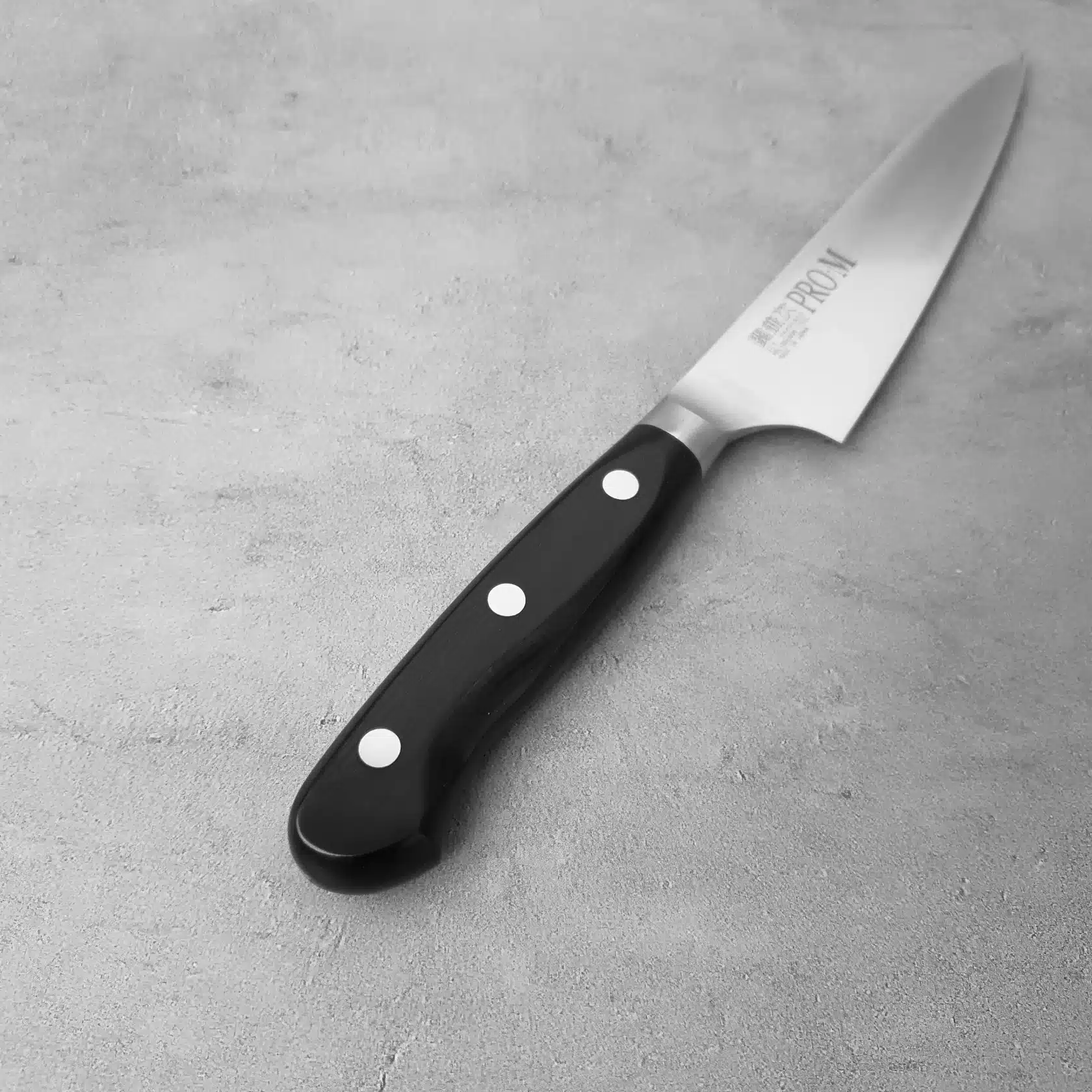 Pro-M-seriens integrerede konstruktion betyder, at klinge og håndtag er svejset sammen uden samlinger eller sprækker. Det sikrer optimal hygiejne, da vand og madrester ikke kan trænge ind, og reducerer risikoen for rust markant. Det ergonomiske håndtag i sort, lamineret og forstærket træ ligger komfortabelt i hånden og gør kniven velegnet til længere tids brug.