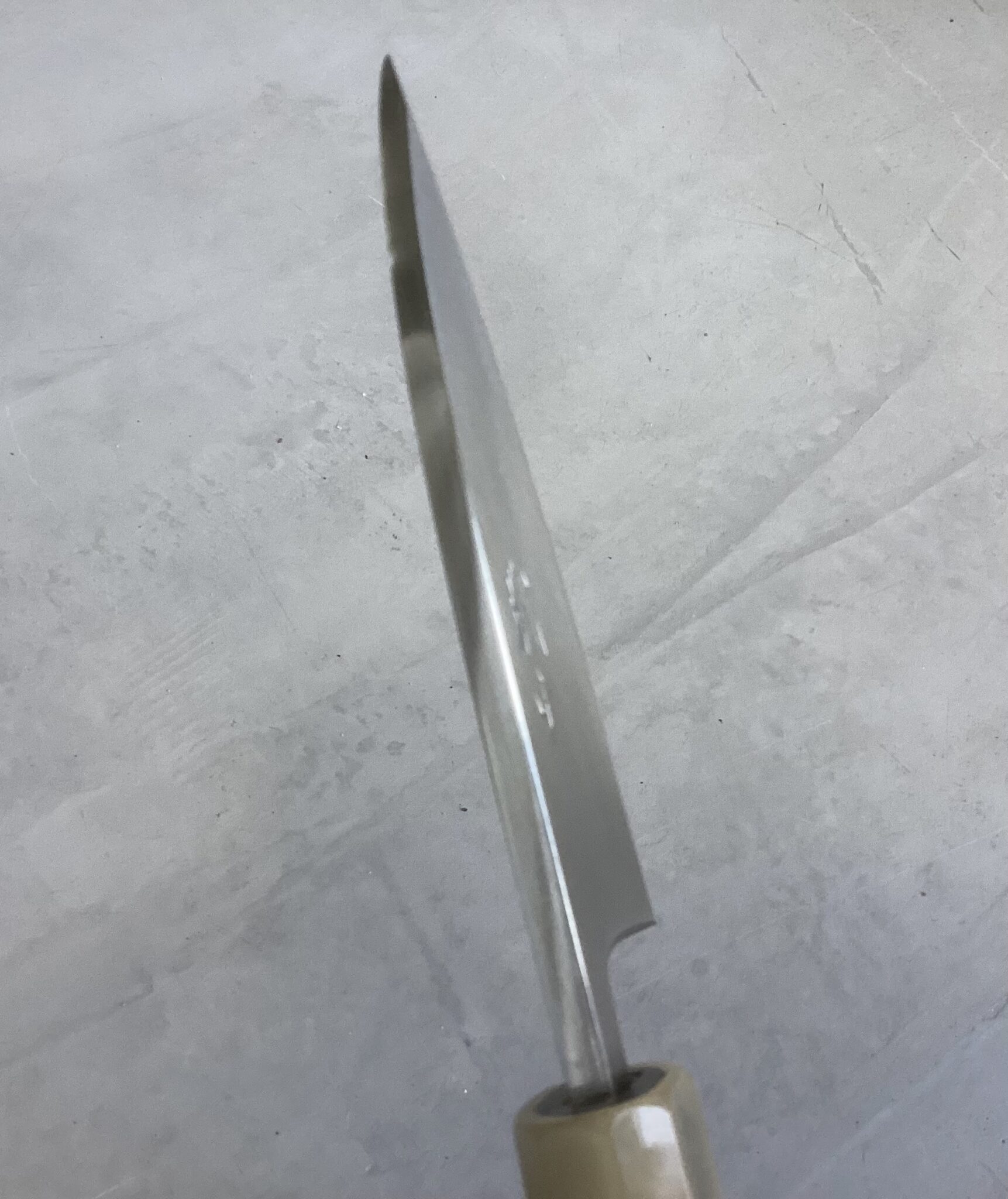 Klingen er smedet i Shirogami #2 (White Paper Steel) – et rent kulstofstål med ekstremt lav legeringsgrad, hvilket muliggør en exceptionelt fin og aggressiv æg. Stålet er kendt for sin overlegne skæreevne, ensartede struktur og evne til at opnå meget høje hårdheder, hvilket resulterer i langvarig skarphed og præcis kontrol.