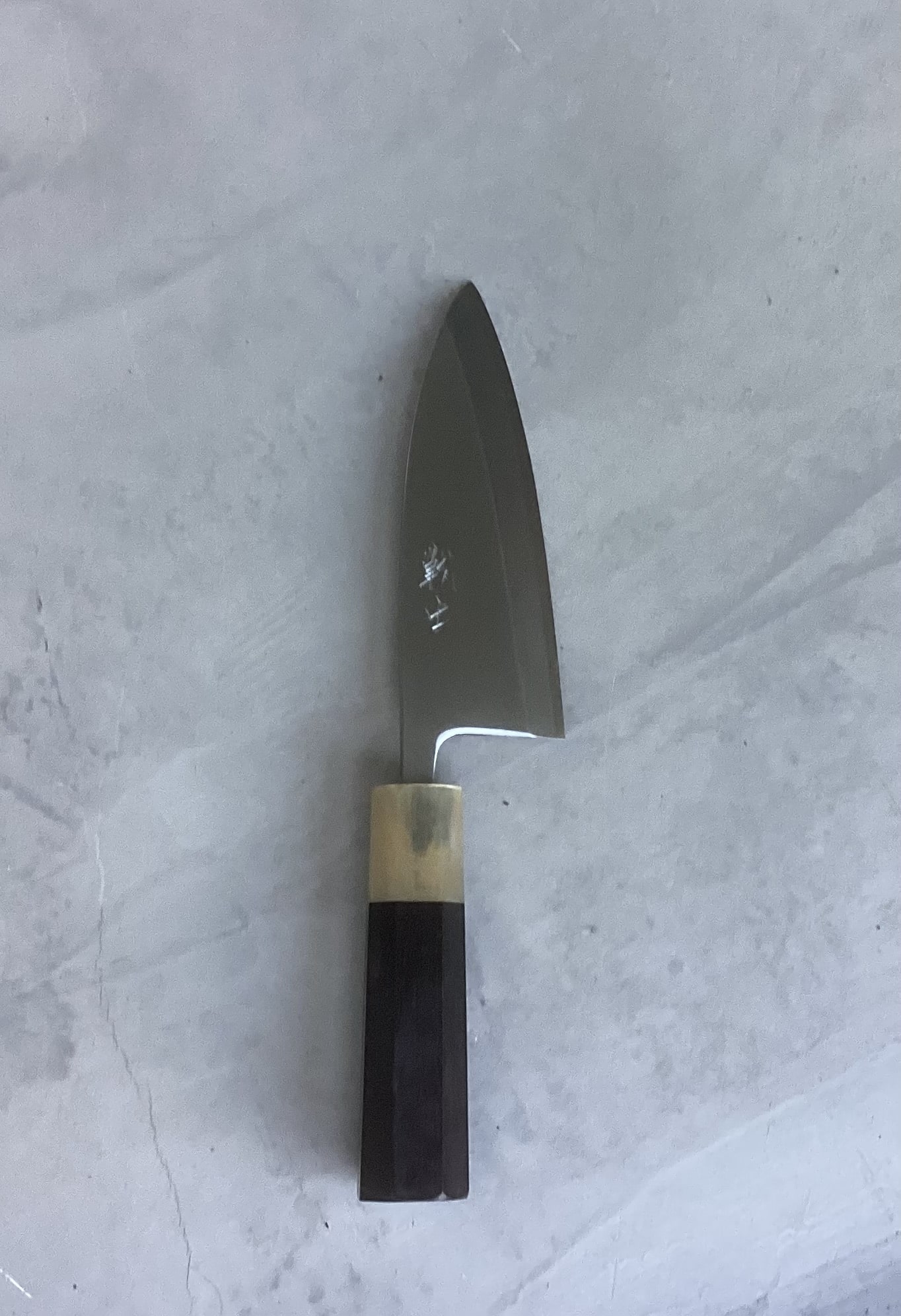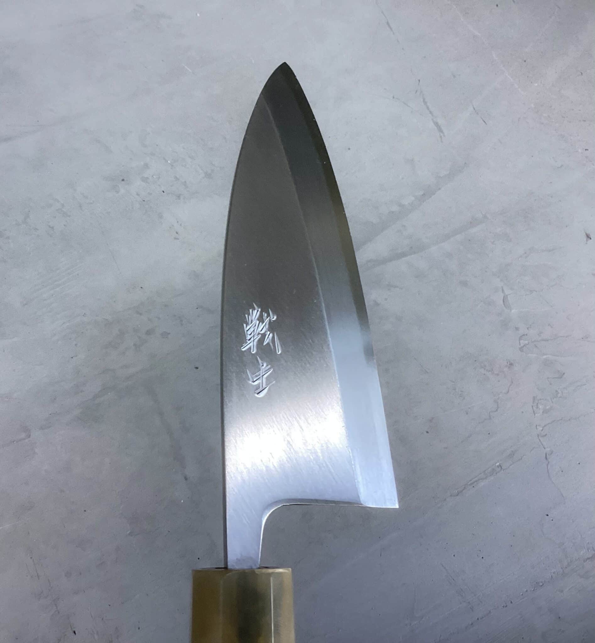 Denne Senshi Deba-kniv på 165 mm er et kompromisløst værktøj, fremstillet efter klassiske japanske traditioner til professionel filetering og præcisionsarbejde med fisk.