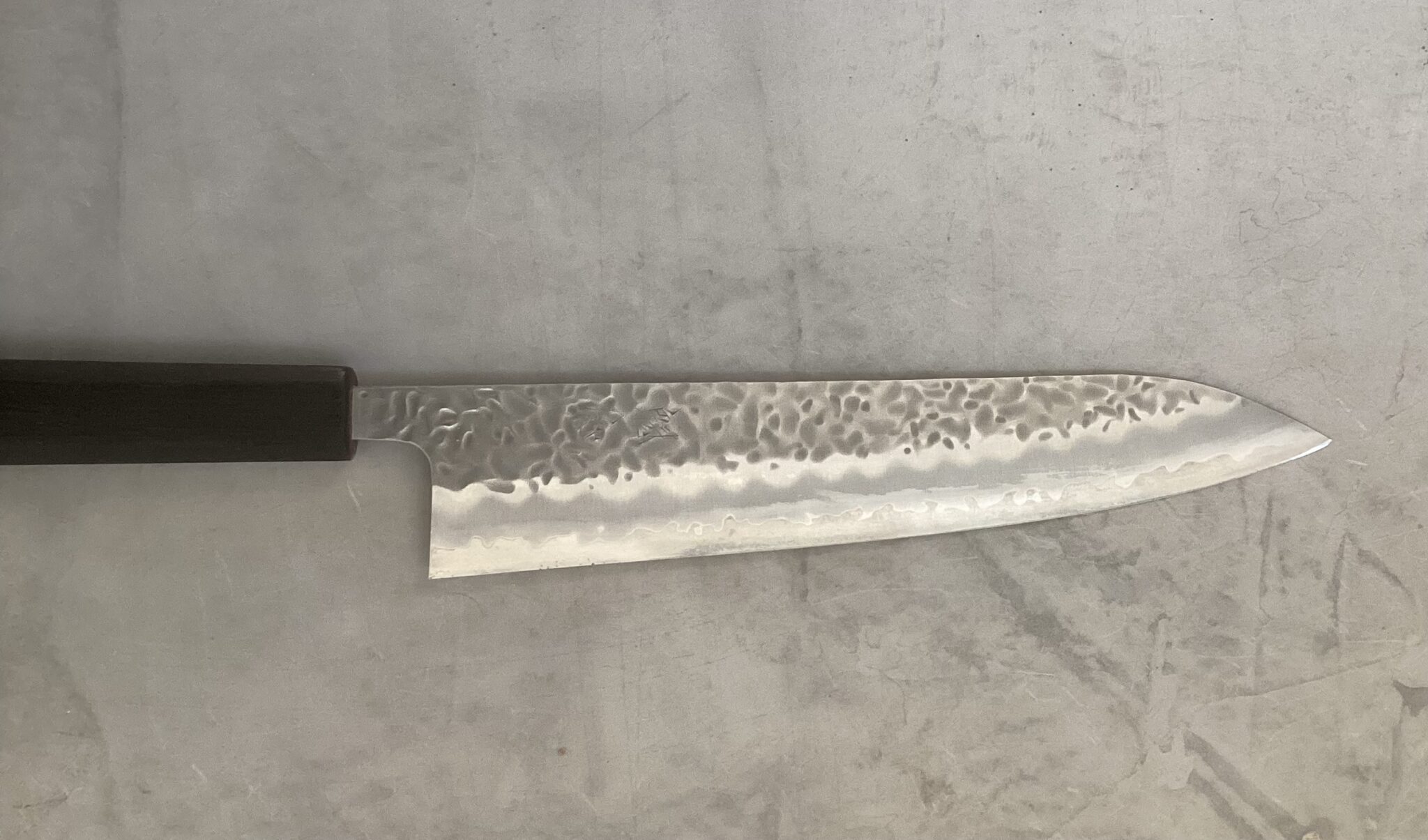 Senshi Gyuto 240mm Aogami Super Tsuchime hammered.